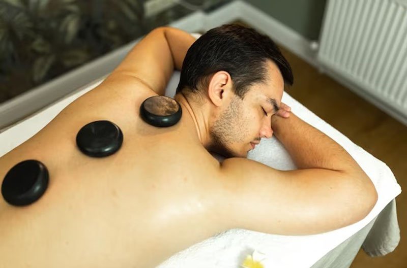 Hot stone massage can relieve pain and tension in your muscles due to the combination of massage therapy and heat. Heat is often recommended as a way to treat achy muscles. Applying heat to an area of the body helps increase blood flow to that spot, which improves healing.